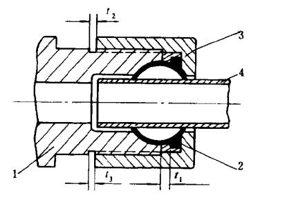 它是由接頭1、卡套2、螺帽3和管子4所組成。擰緊螺帽時,卡套受到接頭內(nèi)部錐面擠壓產(chǎn)生變形,其刃口切入管子壁內(nèi)形成一圈密封線,既能獲得可靠的密封性能,又能防止管子軸向位移?ㄌ捉宇^的密封部位包括卡套刃口嵌人管子壁上的接合面和卡套與接頭內(nèi)錐面的接觸面。后者是在卡套接頭裝配后,卡套被軸向擠壓,使其擠緊在接頭的錐面上,從而形成一道密封線。
